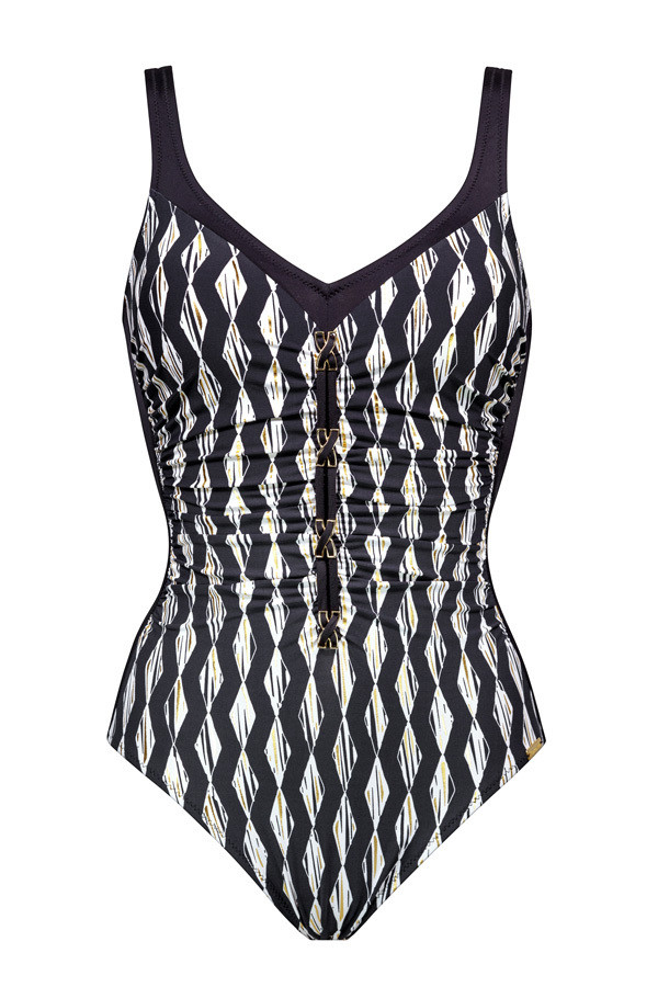 Maillot de bain froncé noir blanc et doré Charmline