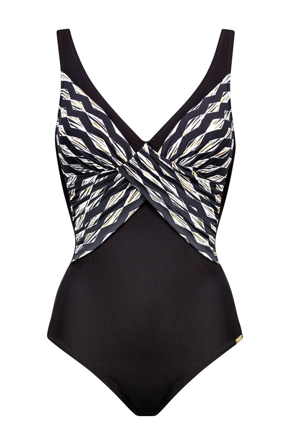 maillot de bain décolleté croisé noir blanc et doré Charmline