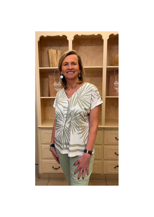 Top vert jade et écru motifs feuilles Tuzzy